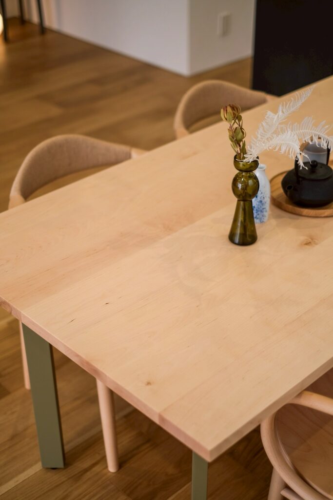 ARCHIBLEUでは、東川町の「木と暮らしの工房」との協力により、シラカバ材を使ったダイニングテーブルの製作が実現しました。